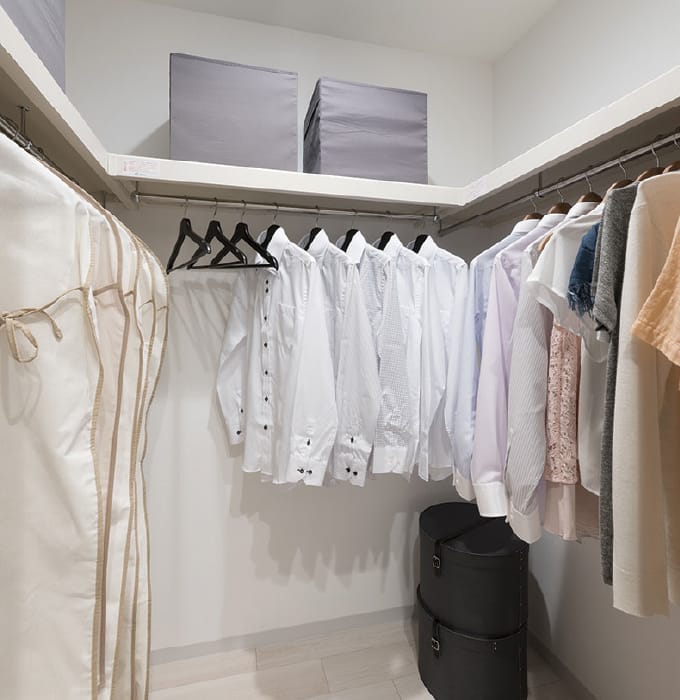 ワードローブから生活グッズや季節用品まで、効率よくしまうことができます。収納スペースに余裕があれば、室内はいつもすっきり広々。より広く、快適に住まうことができます。